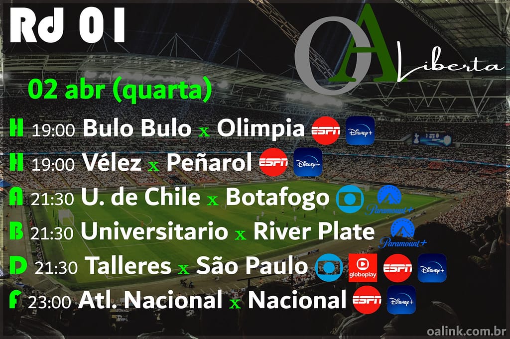 - TV Aberta: A Globo detém os direitos de transmissão da Libertadores até 2026 e exibe jogos na TV aberta. Geralmente, prioriza clubes brasileiros, às quartas-feiras (21h30) e escolhe dois jogos por rodada na fase de grupos.